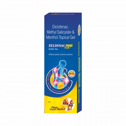 | DESCRIPTION: | Zeldinac Max is a topical pain relief gel used to relieve muscle pain, joint pain, sprains, strains, and inflammation. Diclofenac Sodium acts as a non-steroidal anti-inflammatory agent, Methyl Salicylate provides a warming effect to ease muscle stiffness, and Menthol gives a cooling sensation for quick relief. Zeldinac Max Gel helps reduce swelling, pain, and discomfort, promoting faster recovery. |