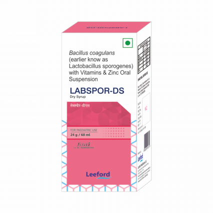 | DESCRIPTION: | Labspor-DS suspension is a multi-nutrient formula combining Lactic Acid Bacillus (a probiotic) with Zinc, Folic Acid (Vitamin B9), Niacinamide (Vitamin B3), and Vitamin B6. It's primarily designed to support digestive health by balancing gut flora, address nutritional deficiencies, and aid in various bodily functions including immune system support, red blood cell formation, and energy metabolism. |