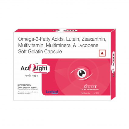 | DESCRIPTION: | Actisight softgel contain Carotenoids (Lycopene, Lutein and Zeaxanthin), Omega 3 fatty acids, Vitamin C, Vitamin E and minerals for the maintenance of eye sight and eye health in all age groups. Actisight lowers risk of Age related macular degeneration (Vision loss) & Cataract. It improves visual field, visual sharpness and reduces the rate of visual decline. It helps to treat Glaucoma, Retinitis Pigmentosa and Dry Eyes. |