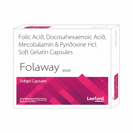| DESCRIPTION: | Folaway softgel contains combines Folic Acid, DHA (an omega-3 fatty acid), Methylcobalamin (an active form of Vitamin B12), and Pyridoxine Hydrochloride (Vitamin B6). This blend is often utilized to support neurological health, promote red blood cell formation, and aid in cognitive function. It's particularly beneficial during pregnancy for fetal development and can help address specific nutritional deficiencies. |