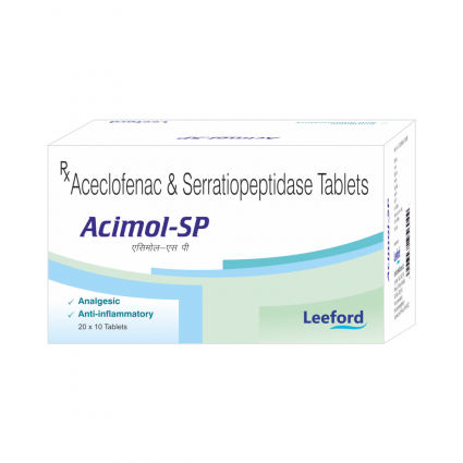 | DESCRIPTION: | Acimol-SP Tablet is a combination of Aceclofenac a NSAID and Serratiopeptidase a Proteolytic enzyme. It is used to relieve pain and inflammation in various conditions. Acimol-SP effectively alleviates pain and inflammation in conditions like rheumatoid arthritis, ankylosing spondylitis, osteoarthritis and post-operative pain. |