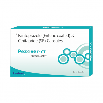 | DESCRIPTION: | Pezover-CT capsule contains Pantoprazole that inhibits acid production and Cinitapride that improves movements of GI tract. They are indicated for relief from Dyspepsia, GERD, nausea associated with severe form of acid peptic disorders, Post-operative nausea and vomiting and chronic gastritis. |
