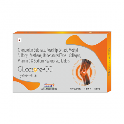 DESCRIPTION: MSM & Collagen helps in building the cartilage and in combination with hyaluronate it is used to build tendons & ligaments; Rosehip extract treats pain & inflammation for joint health & maintenance as well as its rejuvenation. Glucozone-CG protects and rebuilds cartilage in case of osteoarthritis, inflammatory arthritis and cartilage damage in cases of trauma and injury. Besides it is also used for tendon & ligament injuries and rupture.