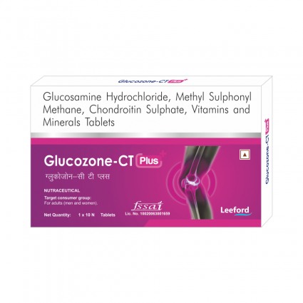 | DESCRIPTION: | Glucozone-CT plus tablets contain Glucosamine, Chondroitin, and Methysulphonyl methane along with various minerals and Vitamin D. It helps in joint restoration, cartilage & synovial fluid formation and improves overall physiology of joints. Glucozone CT plus tablets are indicated for prevention of Rheumatoid arthritis and for cartilage damage in cases of trauma and injury. It decreases pain and inflammation associated with arthritis, improves mobility and flexibility of involved joints, helps in lubrication of stiff joints and rebuilds worn joints. |