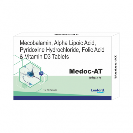 | DESCRIPTION: | Medoc-AT Tablet contains Methylcobalamin (Vitamin B12), Alpha Lipoic acid an antioxidant along with other B vitamins. Medoc-AT tablets are useful in the management of Diabetic neuropathy, Alcohol induced neuropathy, Vitamin B12 deficiency, Postherpetic neuropathy and drug induced neuropathy. |