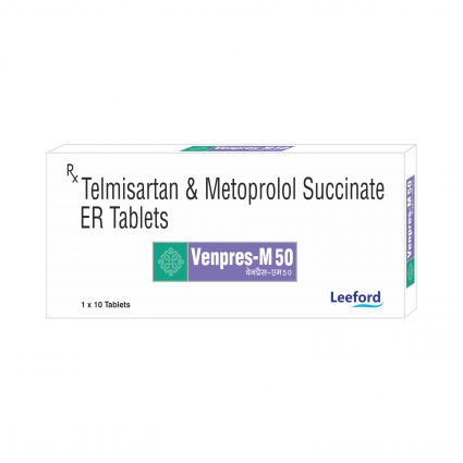 | DESCRIPTION: | Venpres-M tablets contain Telmisartan, an angiotensin Receptor blocker that acts by dilating blood vessels & Metoprolol in extended release form, a beta blocker that acts by reducing the heart rate. This combination is prescribed when single drug alone in not able to control the BP. |