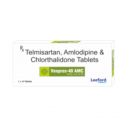 | DESCRIPTION: | Venpres-40 AMC tablets contain Telmisartan, an angiotensin Receptor blocker that acts by dilating blood vessels; Amlodipine, a calcium channel blocker that acts by reducing the force with which heart pumps blood & Chlorthalidone, a diuretic that acts by reducing blood volume. This combination is prescribed when single drug or dual drug combination alone in not able to control the BP. |