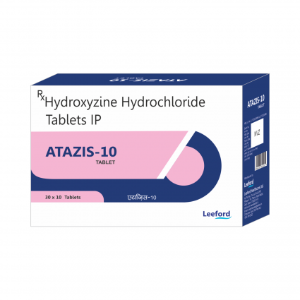| DESCRIPTION: | Atazis contains Hydroxyzine, an anti-allergic drug that acts by stopping action of natural allergy causing chemical i.e. histamine in the body. It is prescribed for allergic reactions (itching, sneezing etc.), for anxiety & tension as well as for sedation i.e. for inducing sleep in medical conditions and after anesthesia. |