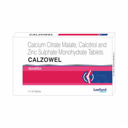 | DESCRIPTION: | Calzowel tablets contain best water soluble form of Calcium i.e.Calcium Citrate Malate (CCM), Calcitriol (form of Vitamin D3) and Zinc. Calzowel tablets are indicated in bone loss (Osteoporosis), weak bones (Osteomalacia/Rickets), hypoparathyridism, Postmenopausal women and for people on steroids or anti-epileptic drugs. |