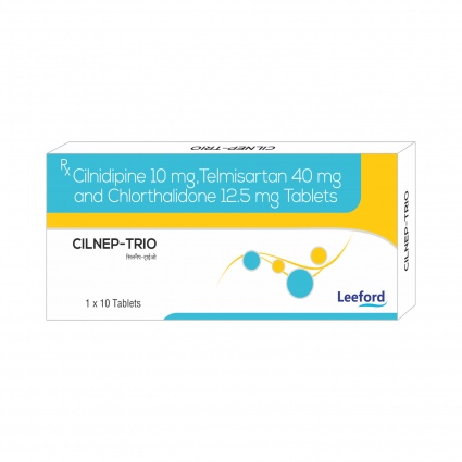 | DESCRIPTION: | Cilnep-Trio tablet contains Cilnidipine, a calcium channel blocker that acts by reducing the force with which heart pumps the blood; Telmisartan, an angiotensin Receptor blocker that acts by dilating blood vessels & Chlorthalidone, a diuretic that acts by removing excessive water from body. It is prescribed for high blood pressure, when two drug combinations fail to exert its effect or are not adequate as in cases of refractory blood pressure. |