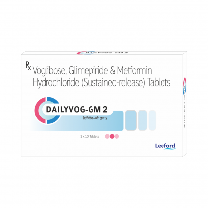 | DESCRIPTION: | Dailyvog-GM2 tablet contains Voglibose, Glimepiride & Metformin; a triple drug combination for effective control of Type II diabetes. It is prescribed in hard to treat cases for effective control of type II diabetes. |