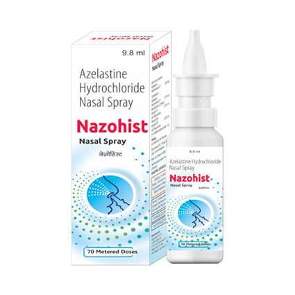 DESCRIPTION: | Nazohist nasal pump spray contains Azelastine, an anti-allergic drug that acts by stopping a chemical called Histamine to exert its effect. It is prescribed to relieve symptoms of seasonal & annual nasal allergies such as runny, itchy, stuffy nose, sneezing, and post-nasal drip caused by allergies or other conditions. |