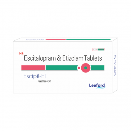 | DESCRIPTION: | Escipil-ET tablet contains Escitalopram, an antidepressant & Etizolam, an anxiolytic; both of which acts by altering brain's chemicals. It is prescribed for co morbid anxiety & depression when manifest together and in other psychiatric diseases. |