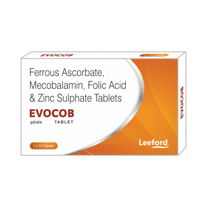 | DESCRIPTION: | Evocob tablet contains Ferrous Ascorbate a highly absorbable form of iron with folic acid, Methylcobalamin (Vitamin B12) and Zinc. Ferivate tablet is indicated for preventing and treating iron deficiency anaemia, pregnancy and lactation, post-surgery and in haemodialysis. |