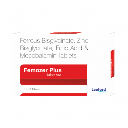 | DESCRIPTION: | Femozer Plus Tablets contain Ferrous bisglycinate and Zinc bisglycinate in amino acid chelated forms which are better absorbed and has minimal side effect unlike other forms of Iron. It also contains Folic acid and Methylcobalamin (Vitamin B12). Femozer-Plus Tablets are indicated for elderly, adults & children above 12 years of age for iron deficiency anaemia, Megabolastic anaemia, anaemia related to malnutrition, in post-surgical & other relevant medical conditions. |